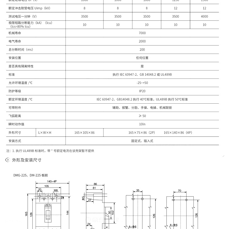 廠家直供應DM225塑殼斷路器DC1000v低壓光伏直流斷路器2P