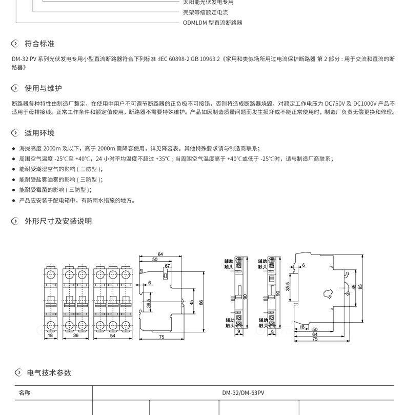 DM32PV小型光伏斷路器1P-4P 1A~63A ,DC250V-1000V空氣開(kāi)關(guān)