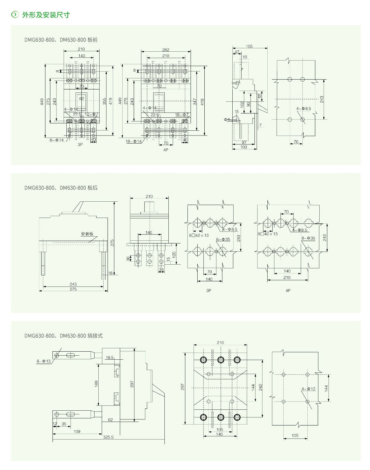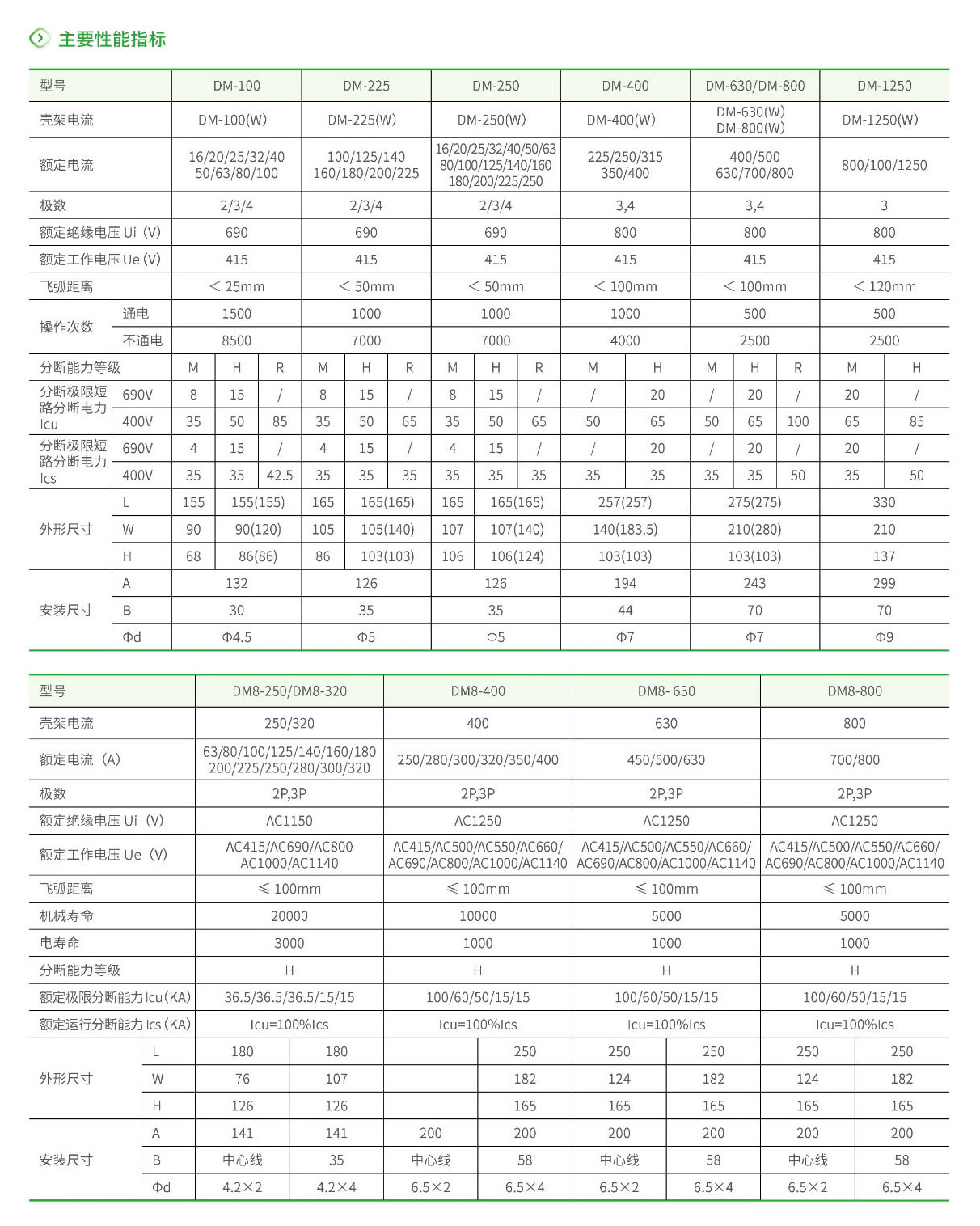 ●DM/DM8系列塑殼斷路器,額定電壓高至AC1140V,電流高至2000A。