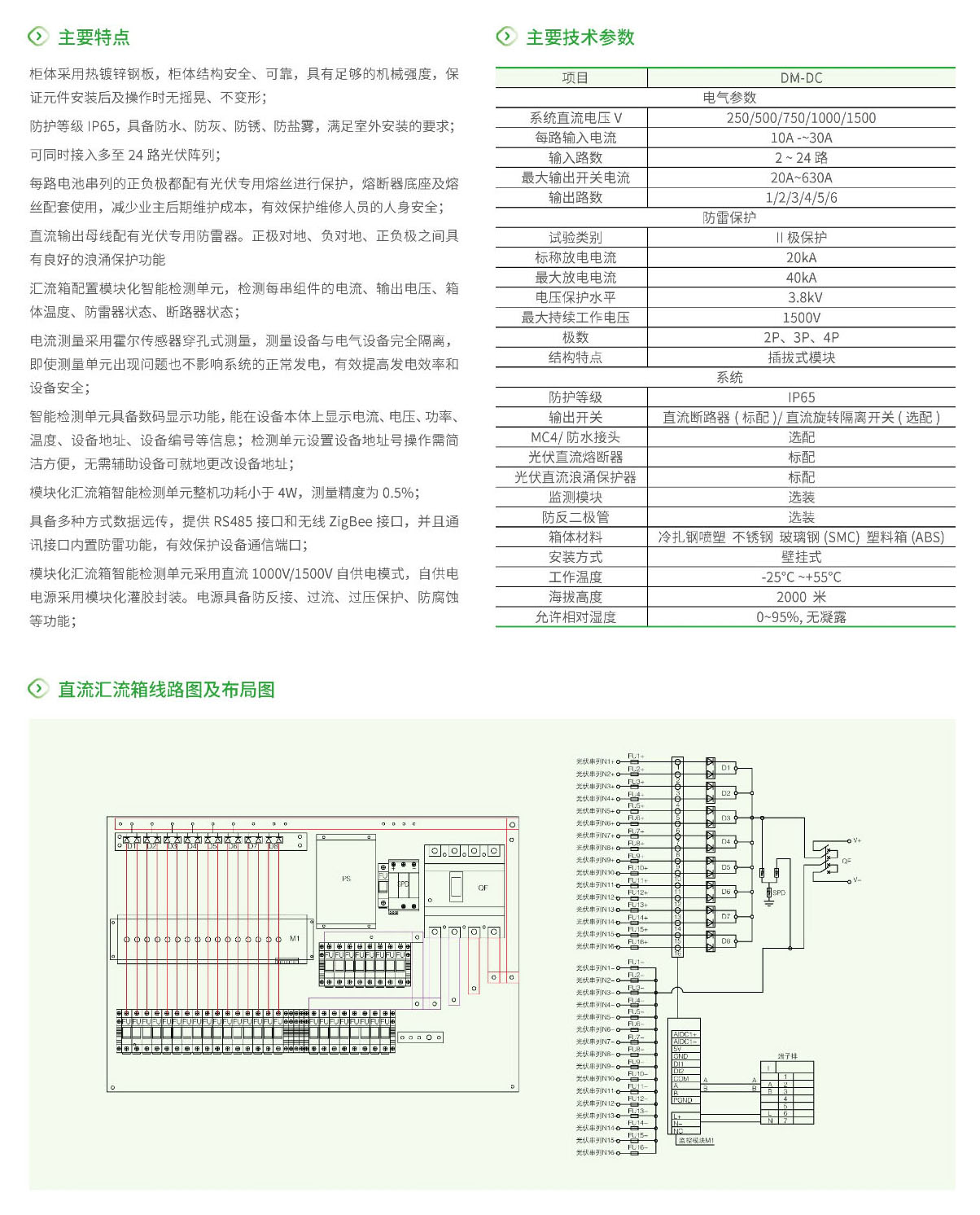 光伏匯流箱應(yīng)用于光伏發(fā)電系統(tǒng)中,減少了光伏組件與逆變器之間連接線。通過光伏專用熔斷器、斷路器和防雷器的保護,提高了可靠性,也方便了系統(tǒng)的維護。用戶可以根據(jù)逆變器輸入的直流電壓范圍,把一定數(shù)量的規(guī)格相同的光伏組件串聯(lián)組成1個光伏組件串列,再將若干個串列接入光伏陣列防雷匯流箱,通過防雷器與斷路器保護后輸出,方便了后級逆變器的接入。