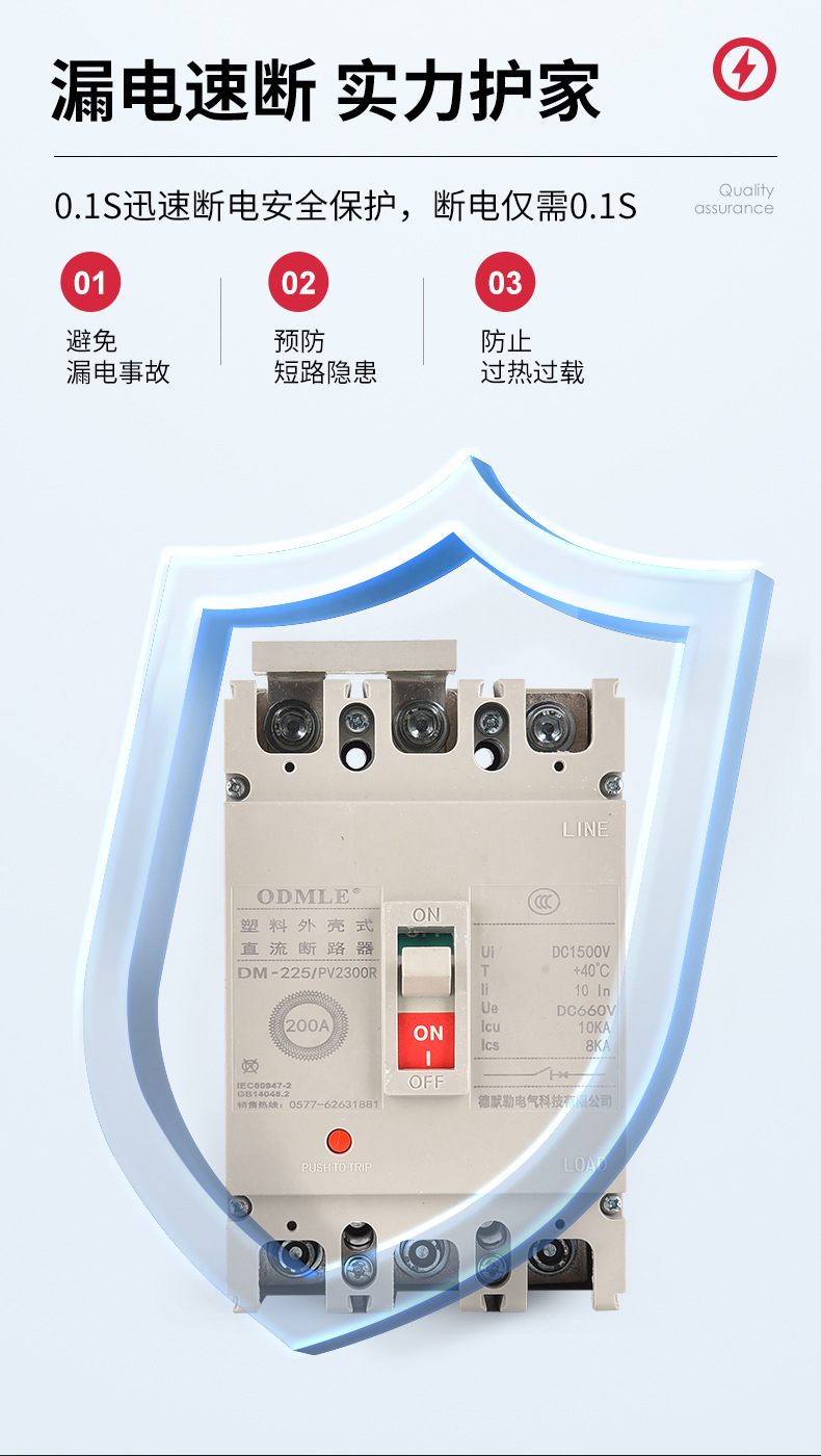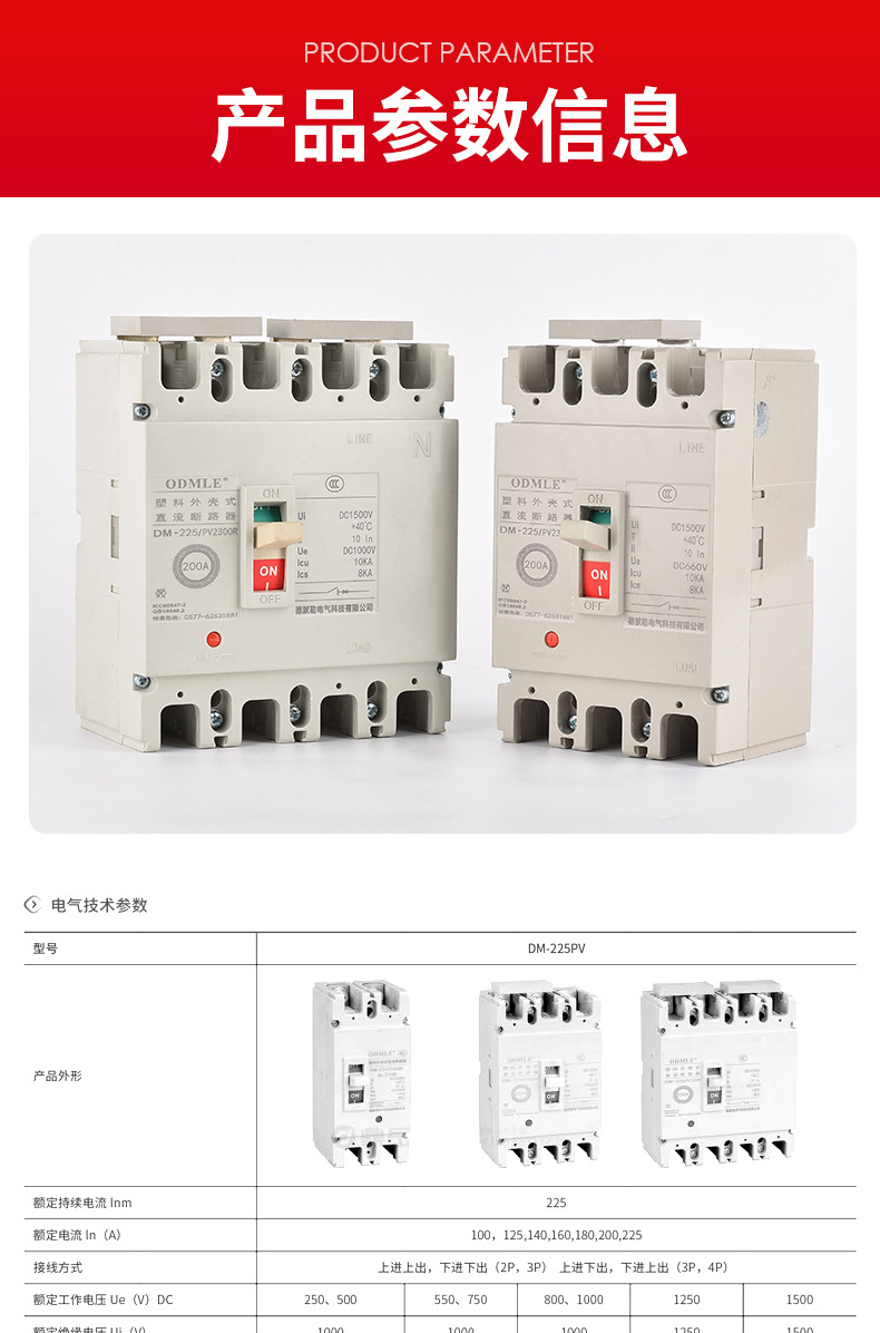 廠家直供應DM225塑殼斷路器DC1000v低壓光伏直流斷路器2P