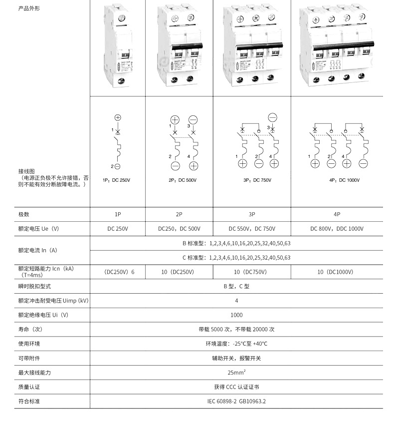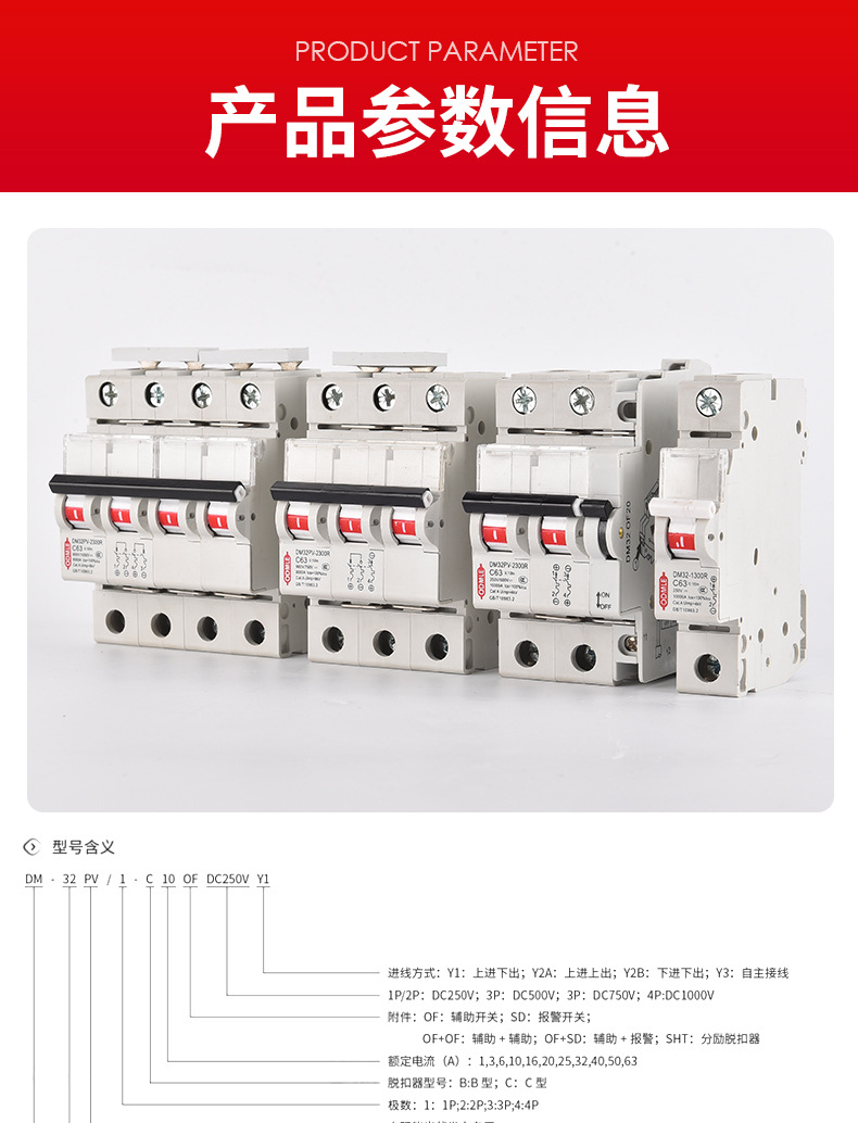DM32PV小型光伏斷路器1P-4P 1A~63A ,DC250V-1000V空氣開(kāi)關(guān)